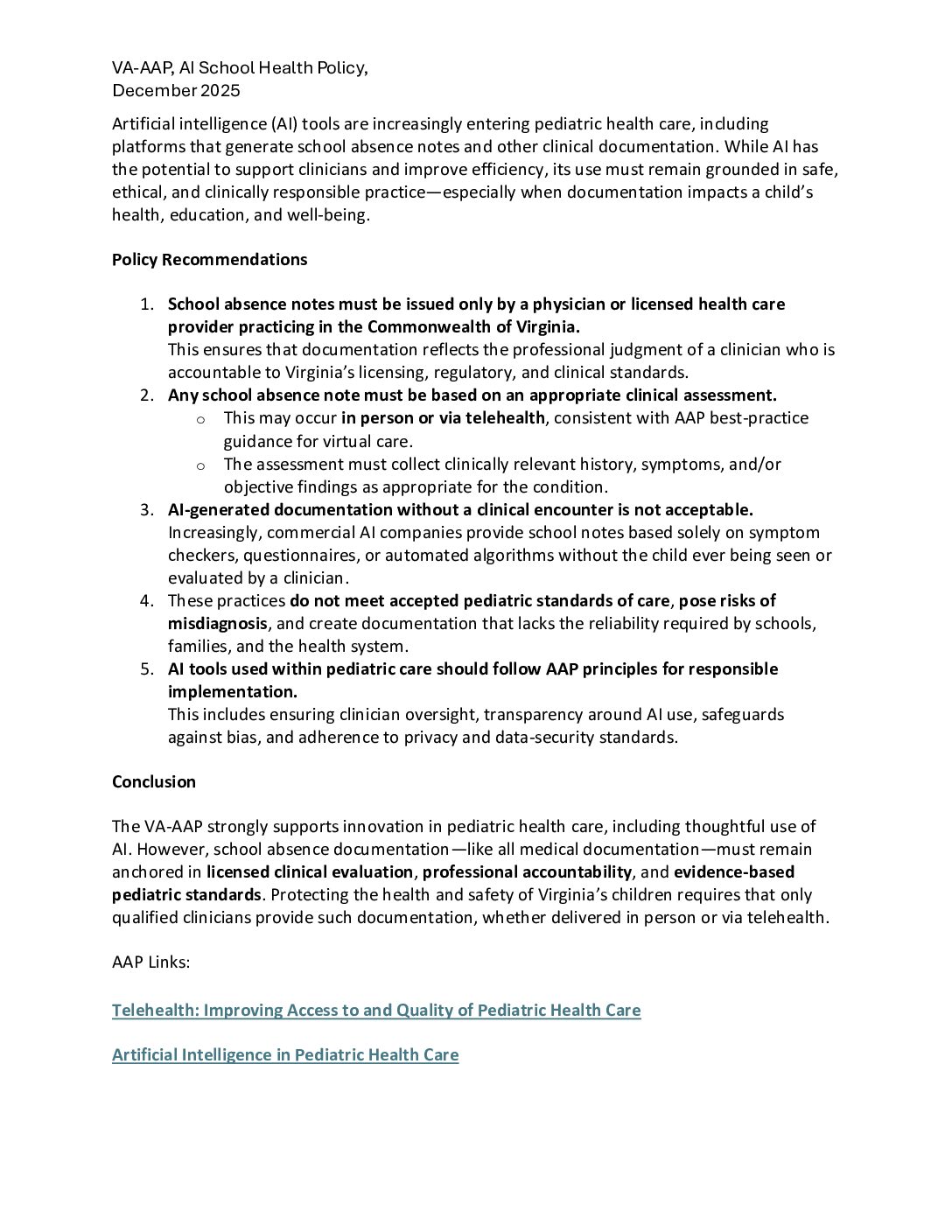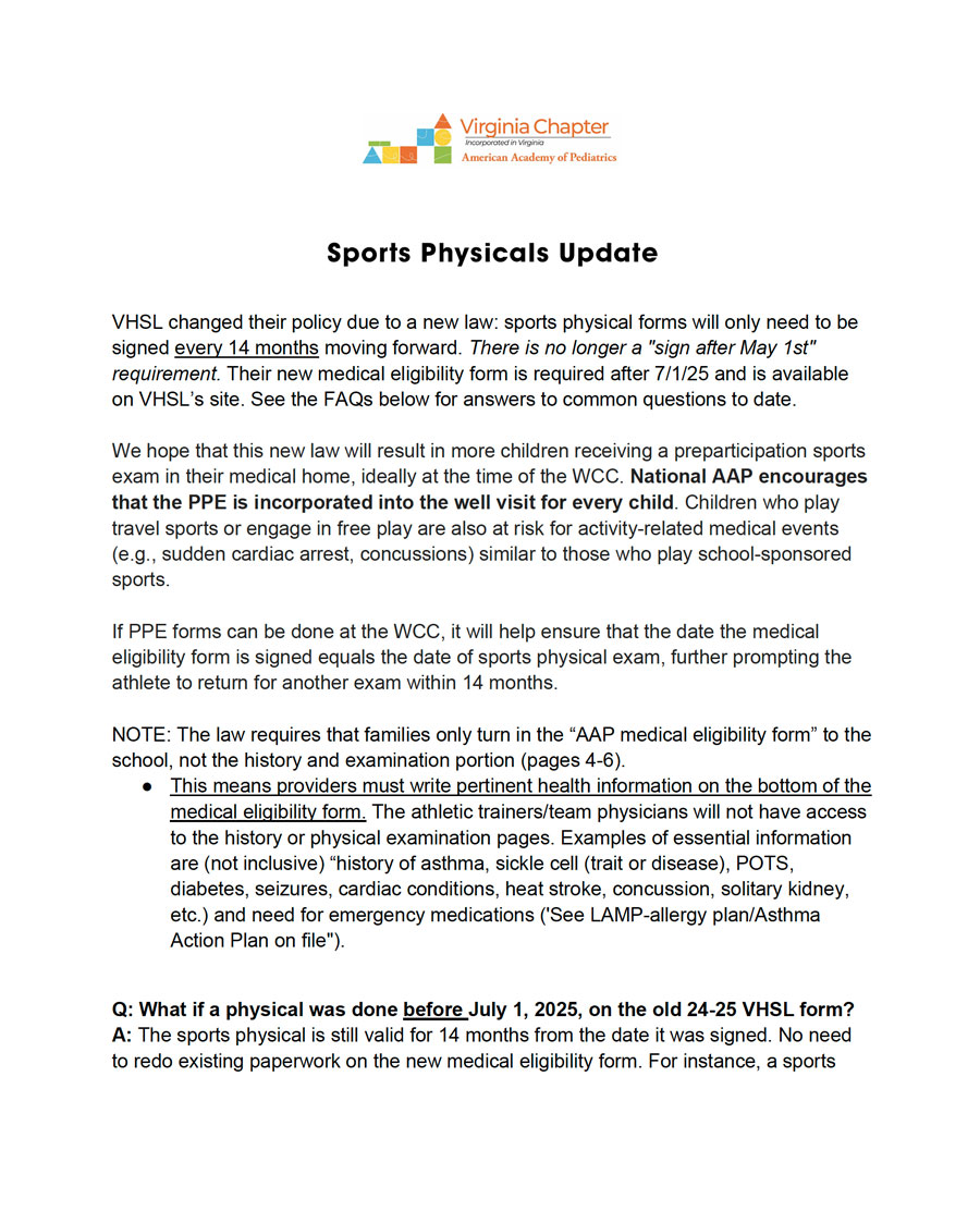 The Virginia chapter recognizes the importance of working with our communities. There is no partner more important than our schools. From school physicals to vaccinations, our work as pediatricians is intertwined with educators and school nurses.